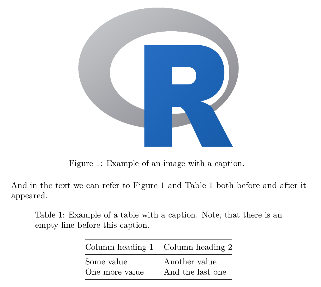 Images are a little bit trickier. We cannot just use the Pandoc approach, because we use a completely different syntax, when we generate figures dynamically. Luckily, R Markdown has a built-in way of adding captions.